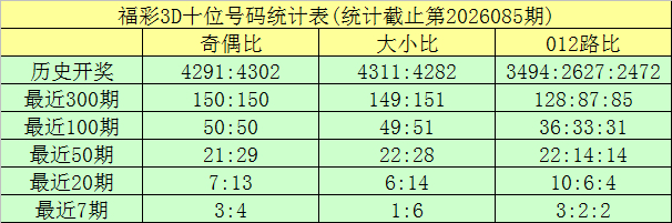 开奖总结:福彩3D第2026085期奖号为:118。奖号情势开出组三,奇偶比开出2:1,012路比为0:2:1,大小比为1:2。