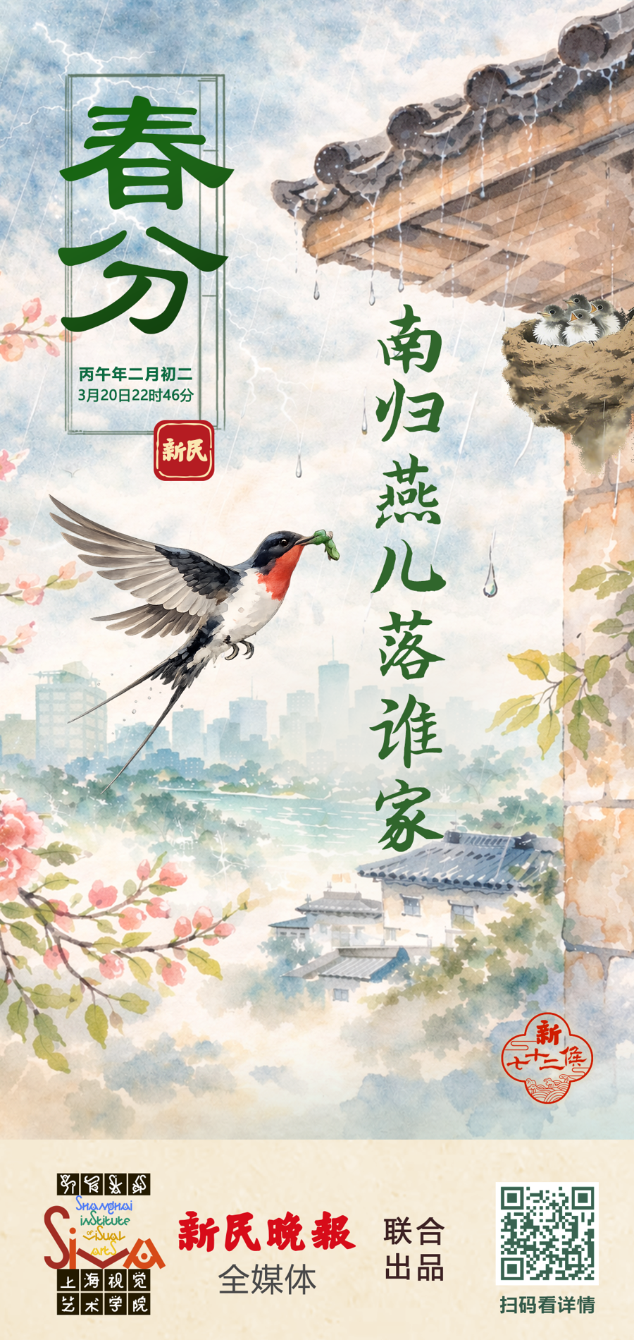 在二十四气节的七十二候中,燕子以“元鸟”之名,最早出当今春分的肇端——初候“元鸟至”,意味着春天万物复苏,燕子南归。燕子从朔方飞抵上海还需要时日,但从“旧时王谢堂前燕,飞入寻常庶民家”的诗词到“小燕子穿花衣,年年春天到这里”的歌曲,燕子齐是东说念主们心目中“春天来了”的不二代表。