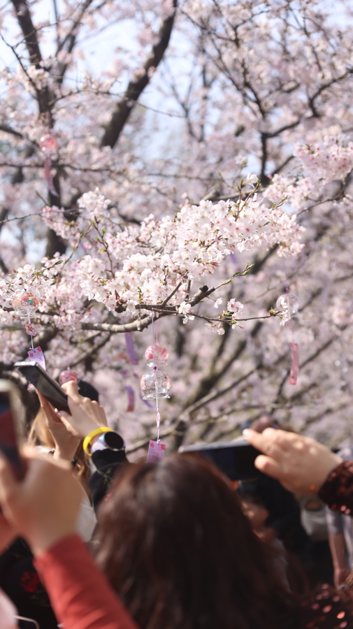 搭客纷繁举起手机,记载漫天樱花雨