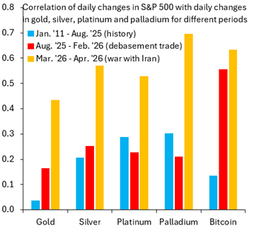换而言之,黄金仍然莫得像白银、铂金、钯金或比特币那样充足酿成高风险金钱,但其走势标的依然越来越接近风险金钱,而不是投资者往时熟谙的寂然避险器具。